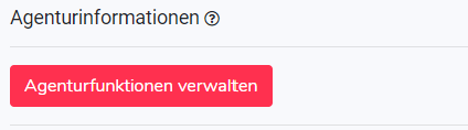 Die Agenturfunktionen klassifizieren Ihre Mitarbeiter in der Digitalen Agentur. Um Funktionen anzulegen bzw. zu bearbeiten, gehen Sie in die Einstellungen unter den Punkt „Agentur“ und klicken auf den Button „Agenturfunktionen verwalten“:
